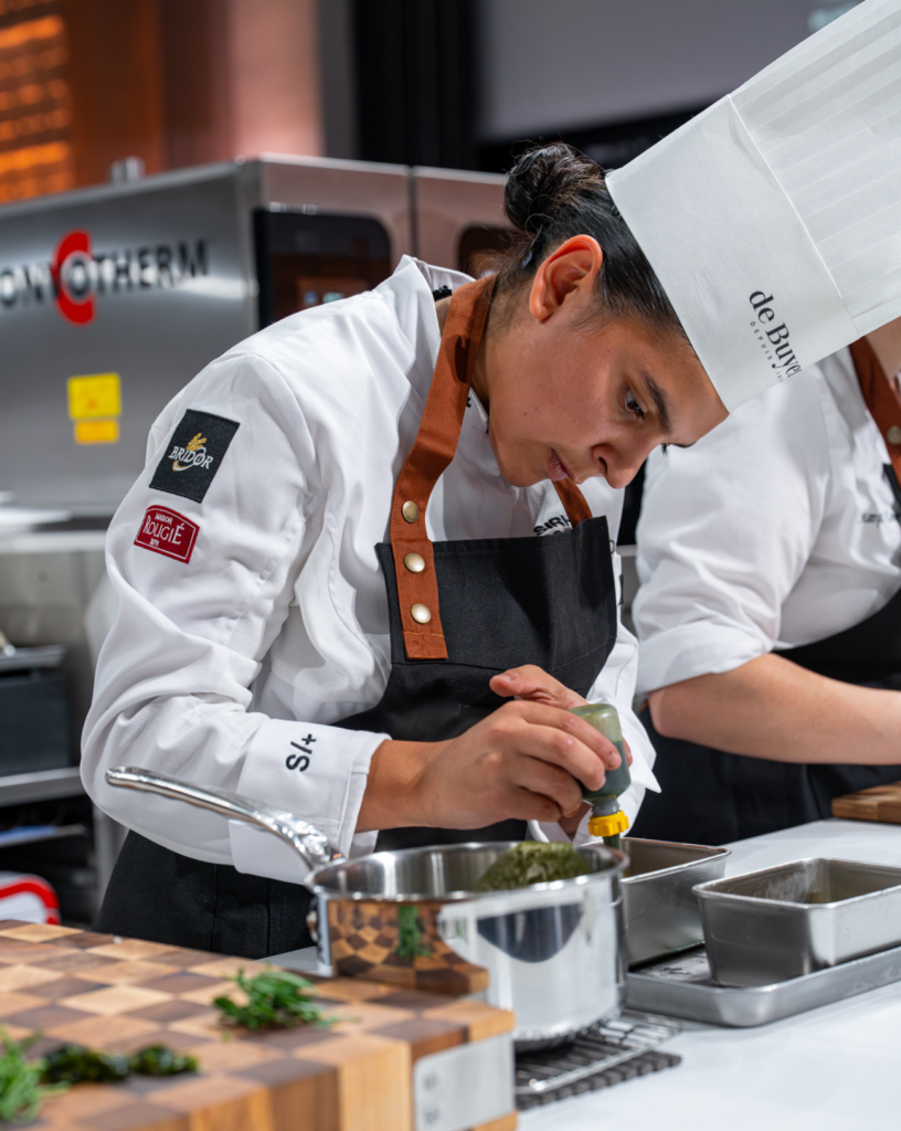 Talentueuse et déterminée, elle apporte fraîcheur et précision à chaque assiette. Elle met son énergie et son sens du détail au service d’un duo chef-commis devenu binôme d’excellence. À tout juste 17 ans, elle a su s’imposer comme un pilier de l’équipe afin de soutenir Maxence jusqu’à la qualification.